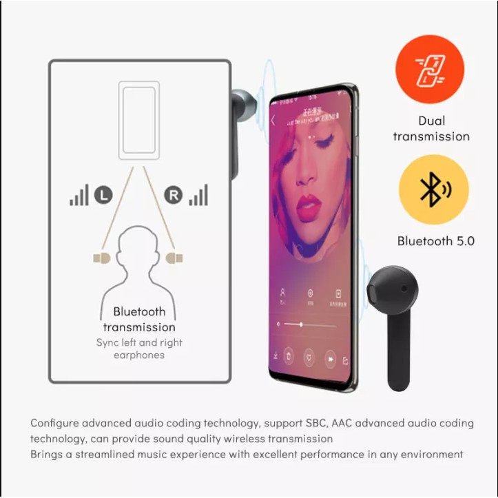 True Wireless tws 5.2 Bluetooth Earphone In-Ear Music Light weight Earbuds With Mic Charging type-c voice bass Student earphones